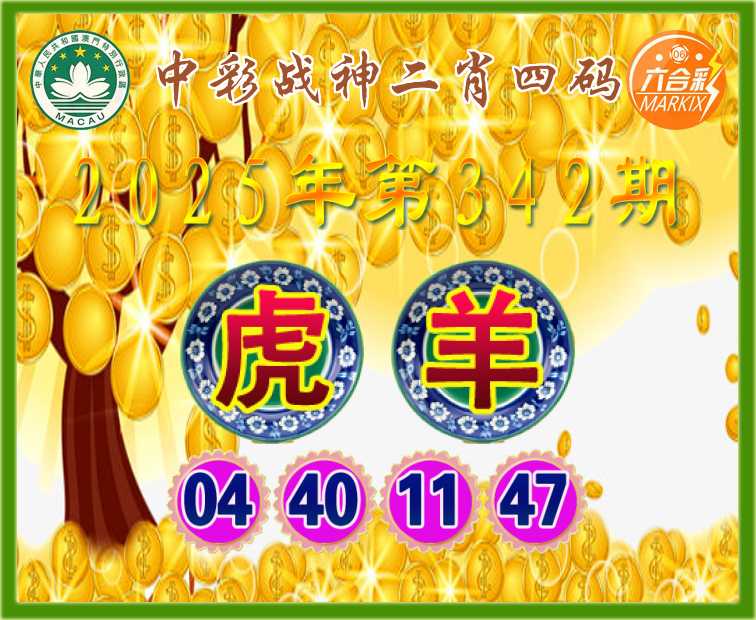 342期:《中彩战神》 🥓二肖四码🥓【虎羊】【04.40.11.47】开:虎04准