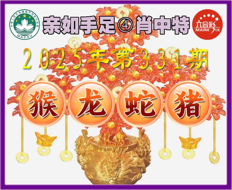 331期:〖亲如手足〗 🏆④肖中特🏆【猴.龙.蛇.猪】开:龙26准