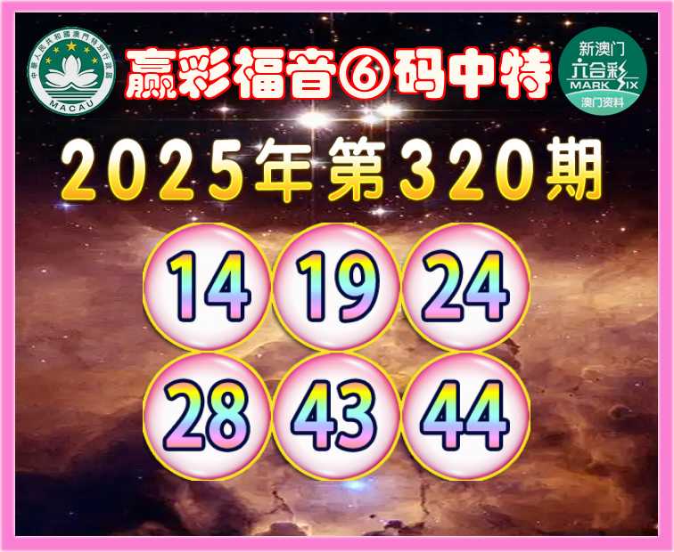 320期:《赢彩福音》 ✨⑥码中特✨【14.19.24.28.43.44】开:28准