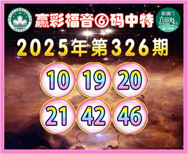326期:《赢彩福音》 ✨⑥码中特✨【10.19.20.21.42.46】开:19准