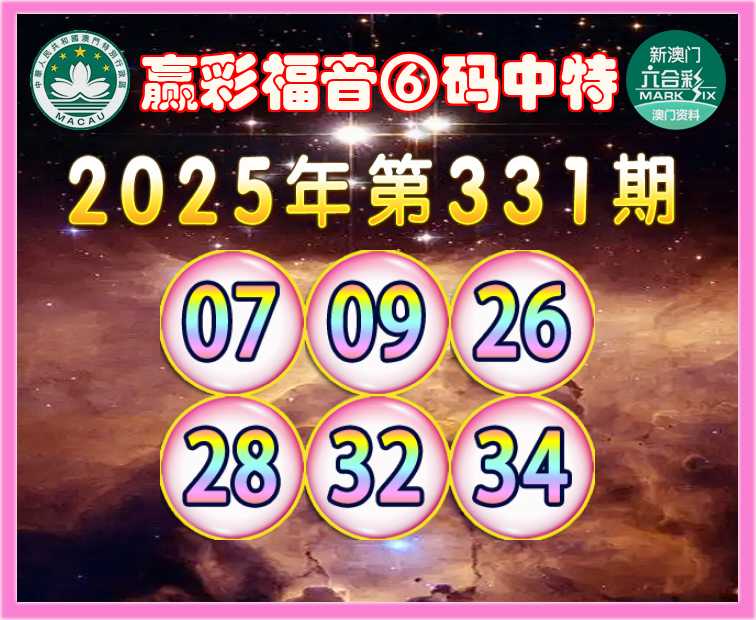 331期:《赢彩福音》 ✨⑥码中特✨【07.09.26.28.32.34】开:26准