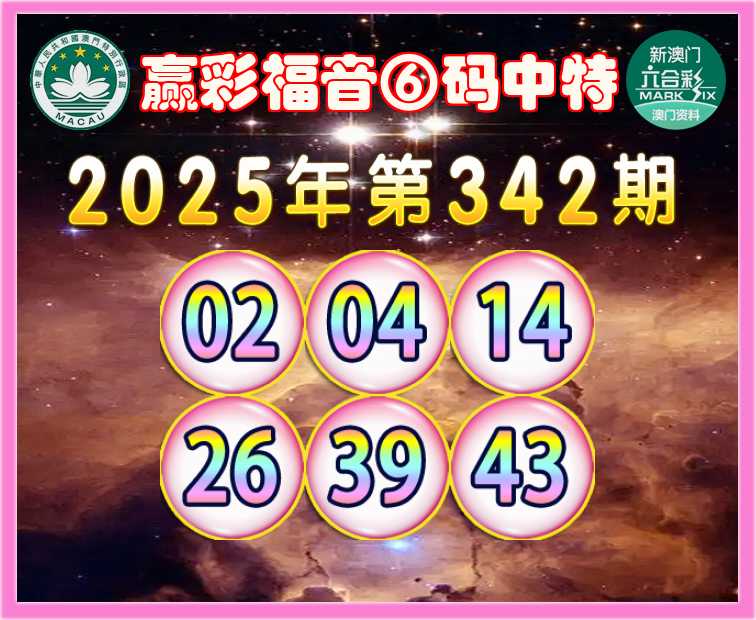342期:《赢彩福音》 ✨⑥码中特✨【02.04.14.26.39.43】开:04准