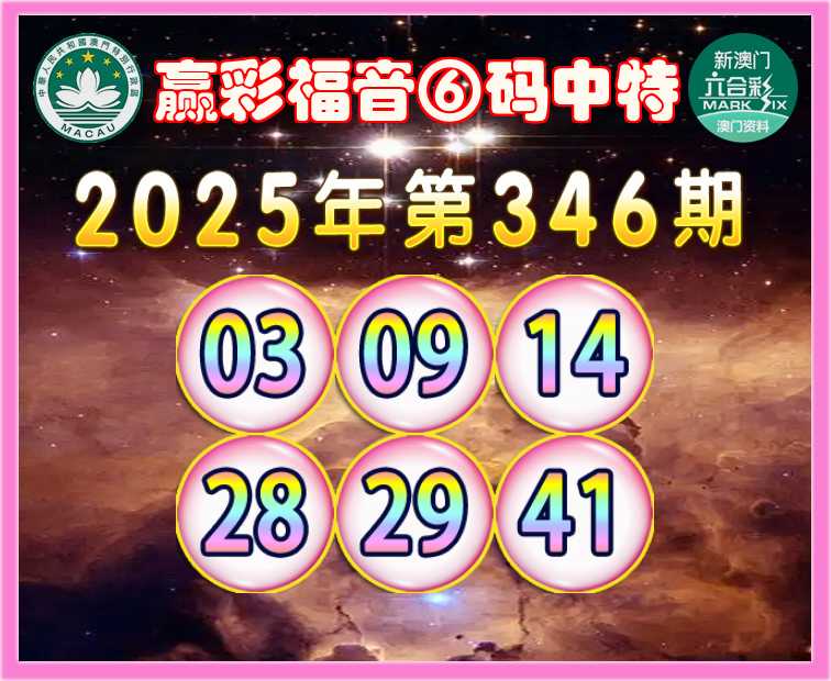 346期:《赢彩福音》 ✨⑥码中特✨【03.09.14.28.29.41】开:03准