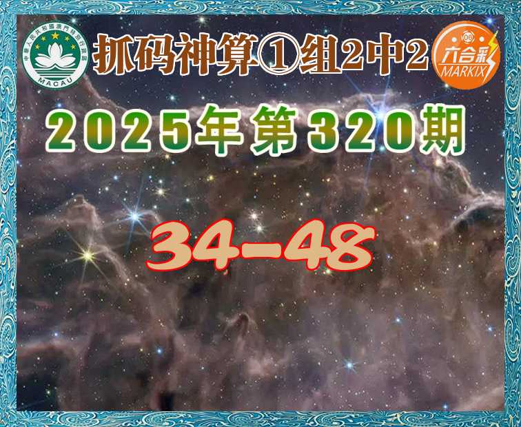 320期:【抓码神算】 🏄♀️①组2中2🏄♀️【34-48】