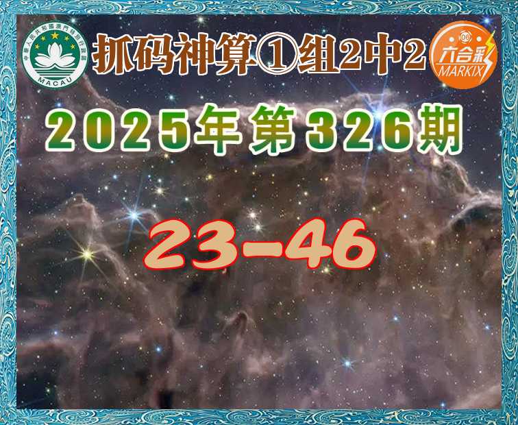326期:【抓码神算】 🏄♀️①组2中2🏄♀️【23-46】