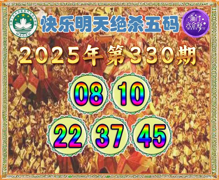 330期:〖快乐明天〗 🥧绝杀五码🥧【08.10.22.37.45】开:马36准