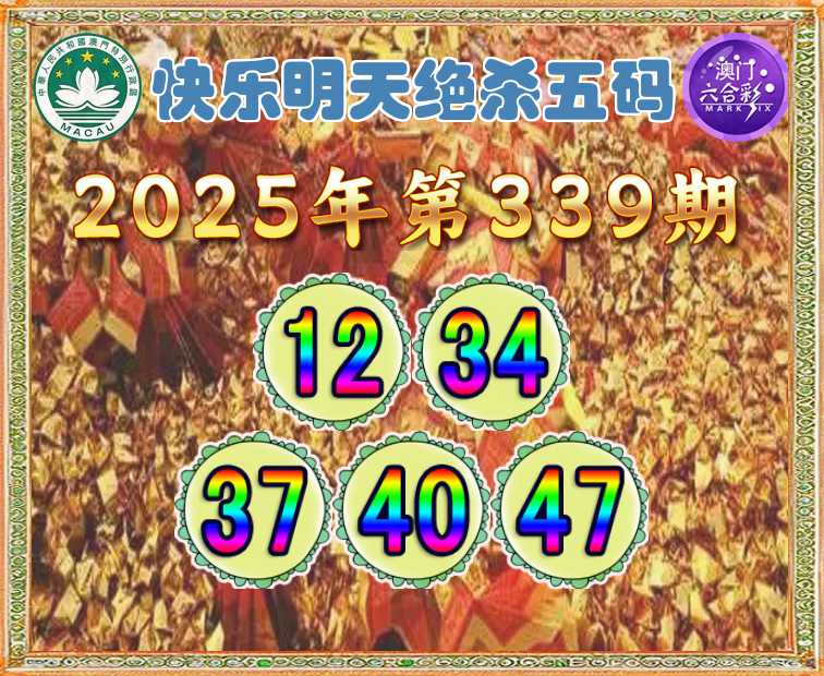 339期:〖快乐明天〗 🥧绝杀五码🥧【12.34.37.40.47】开:马48准