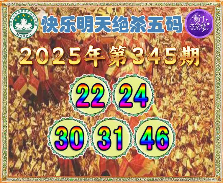 345期:〖快乐明天〗 🥧绝杀五码🥧【22.24.30.31.46】开:马24错