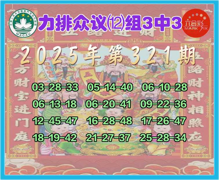 321期:【力排众议】 🥧 ⑿组3中3 🥧