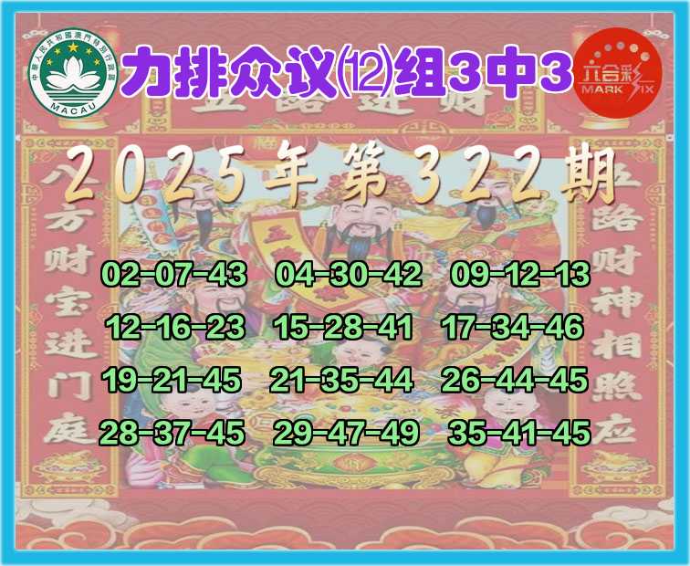 322期:【力排众议】 🥧 ⑿组3中3 🥧