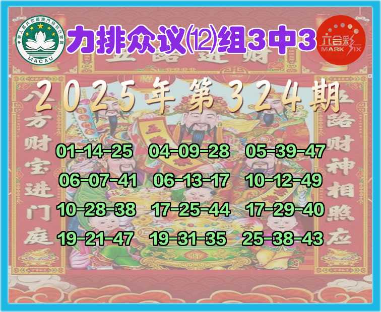 324期:【力排众议】 🥧 ⑿组3中3 🥧