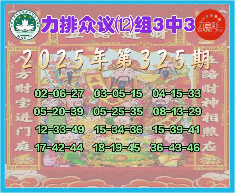 325期:【力排众议】 🥧 ⑿组3中3 🥧