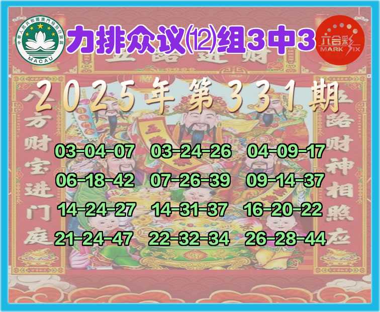 331期:【力排众议】 🥧 ⑿组3中3 🥧