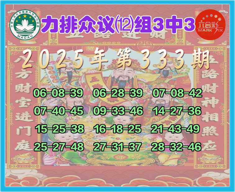 333期:【力排众议】 🥧 ⑿组3中3 🥧