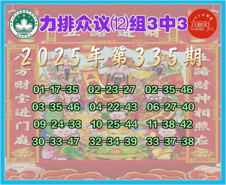335期:【力排众议】 🥧 ⑿组3中3 🥧