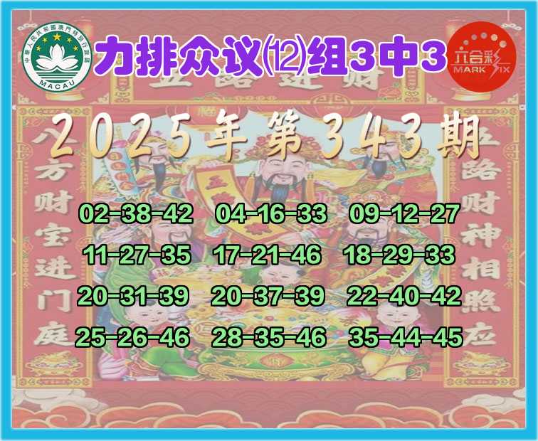 343期:【力排众议】 🥧 ⑿组3中3 🥧