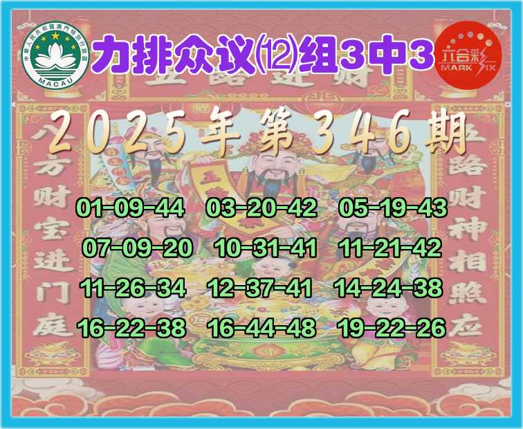 346期:【力排众议】 🥧 ⑿组3中3 🥧