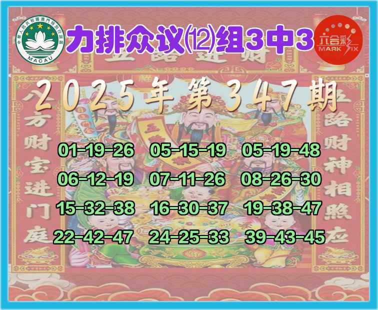 347期:【力排众议】 🥧 ⑿组3中3 🥧