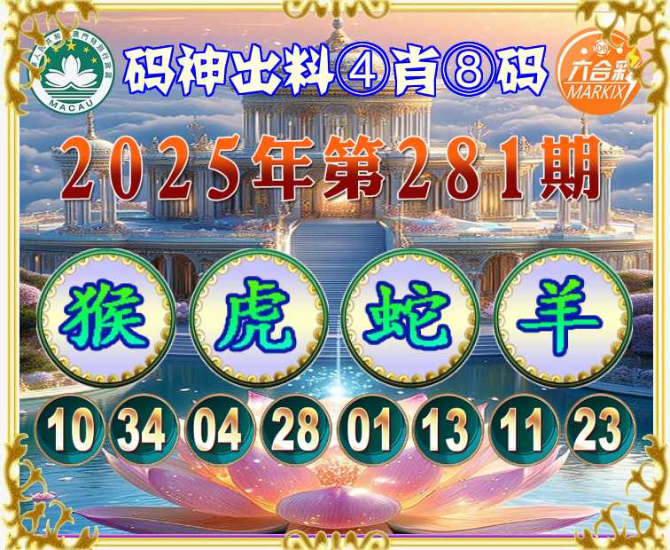 281期: 🌳《码神出料》 🌳④肖⑧码🌳【猴虎蛇羊】开:羊47准