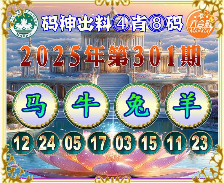 301期: 🌳《码神出料》 🌳④肖⑧码🌳【马牛兔羊】开:牛05准