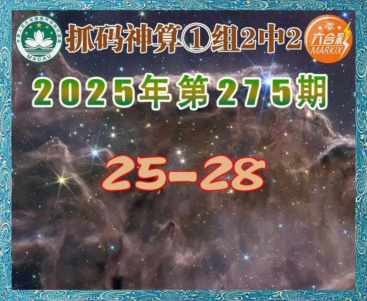 275期:【抓码神算】 🏄♀️①组2中2🏄♀️【25-28】