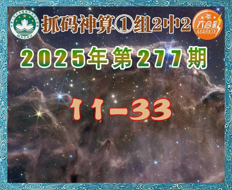 277期:【抓码神算】 🏄♀️①组2中2🏄♀️【11-33】