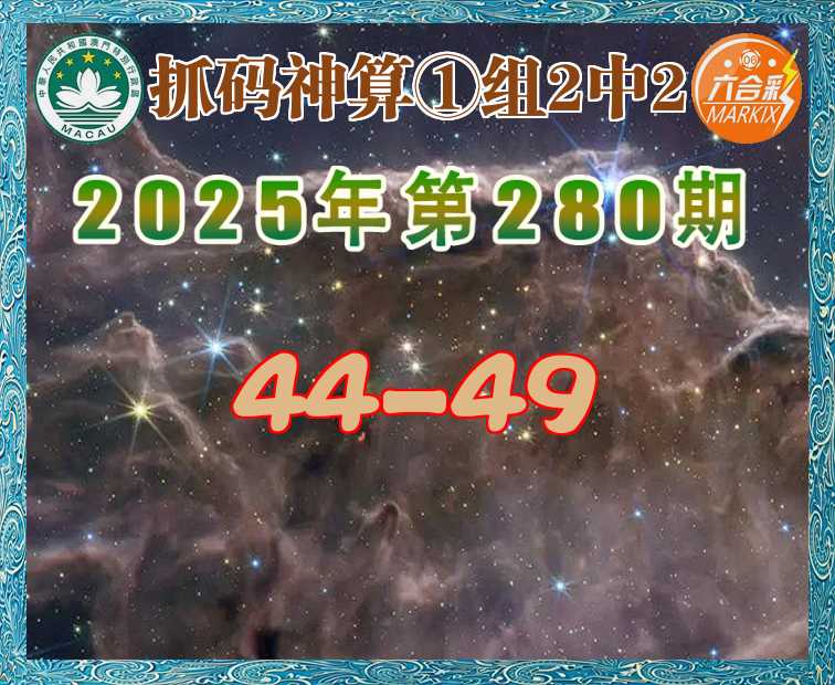 280期:【抓码神算】 🏄♀️①组2中2🏄♀️【44-49】