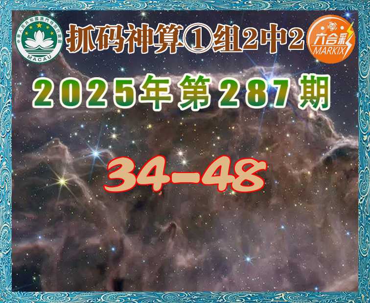 287期:【抓码神算】 🏄♀️①组2中2🏄♀️【34-48】