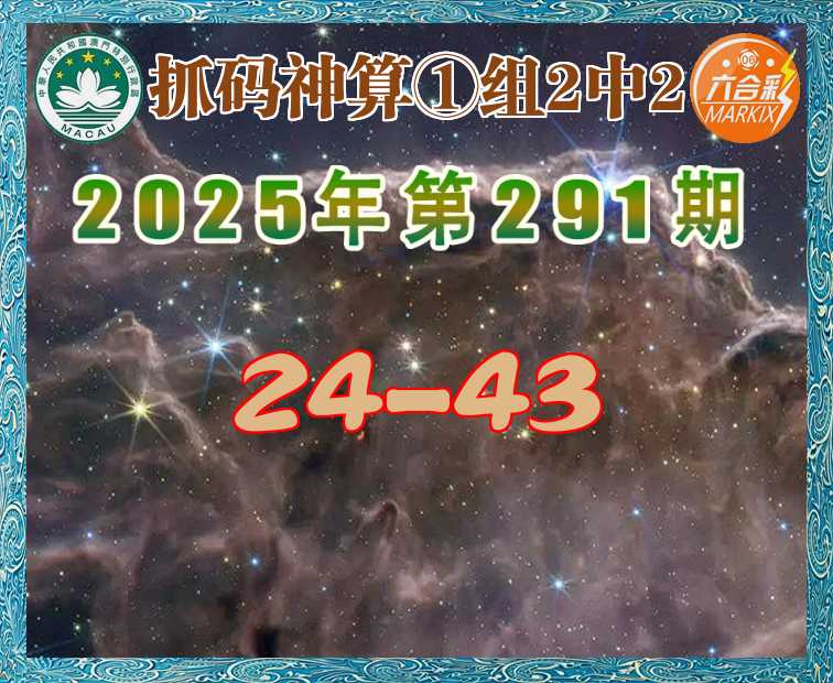 291期:【抓码神算】 🏄♀️①组2中2🏄♀️【24-43】