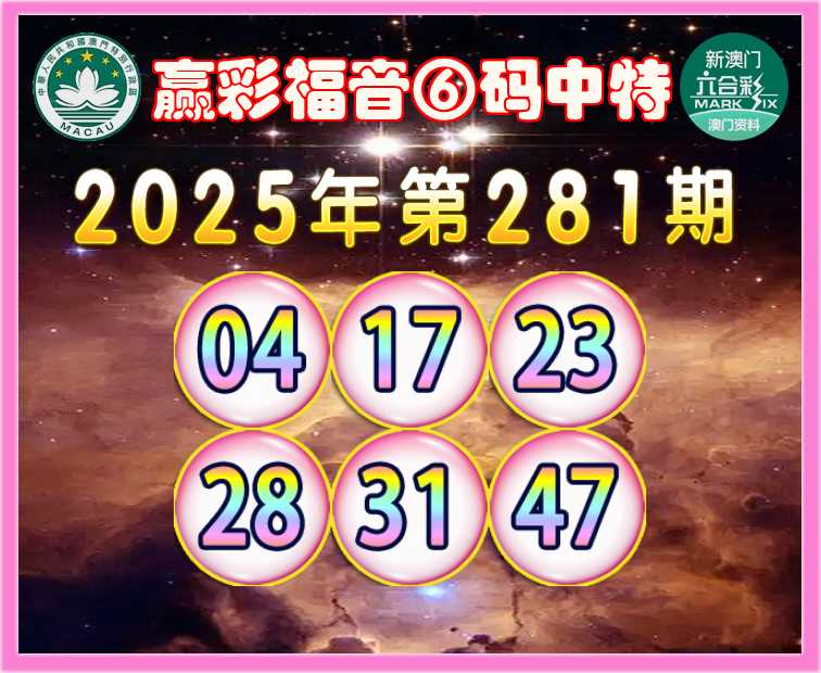 281期:《赢彩福音》 ✨⑥码中特✨【04.17.23.28.31.47】开:47准