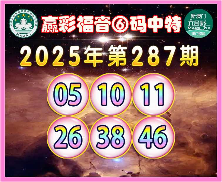 287期:《赢彩福音》 ✨⑥码中特✨【05.10.11.26.38.46】开:34错