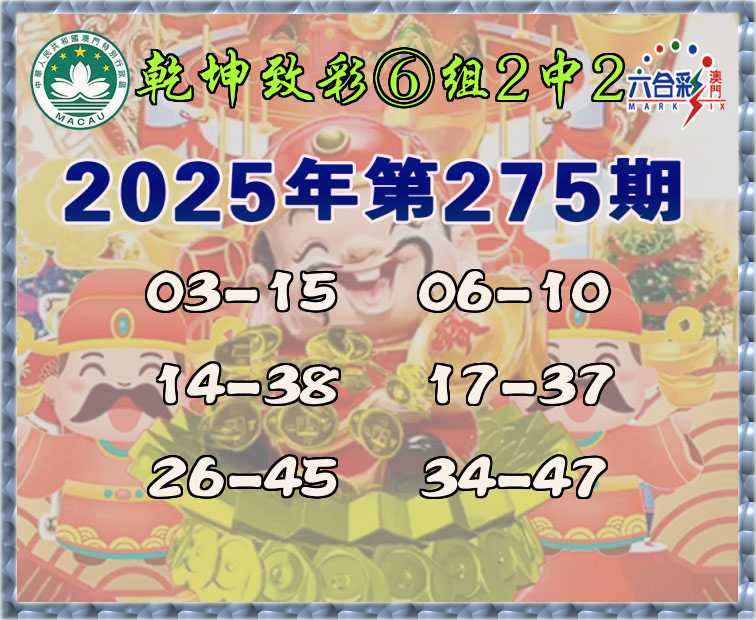 275期: 🎆《乾坤致彩》 🎆⑥组2中2🎆