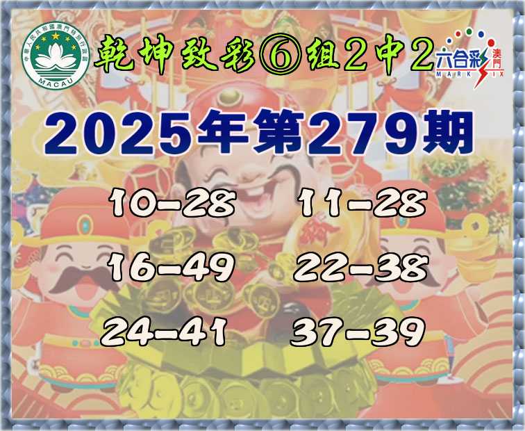 279期: 🎆《乾坤致彩》 🎆⑥组2中2🎆