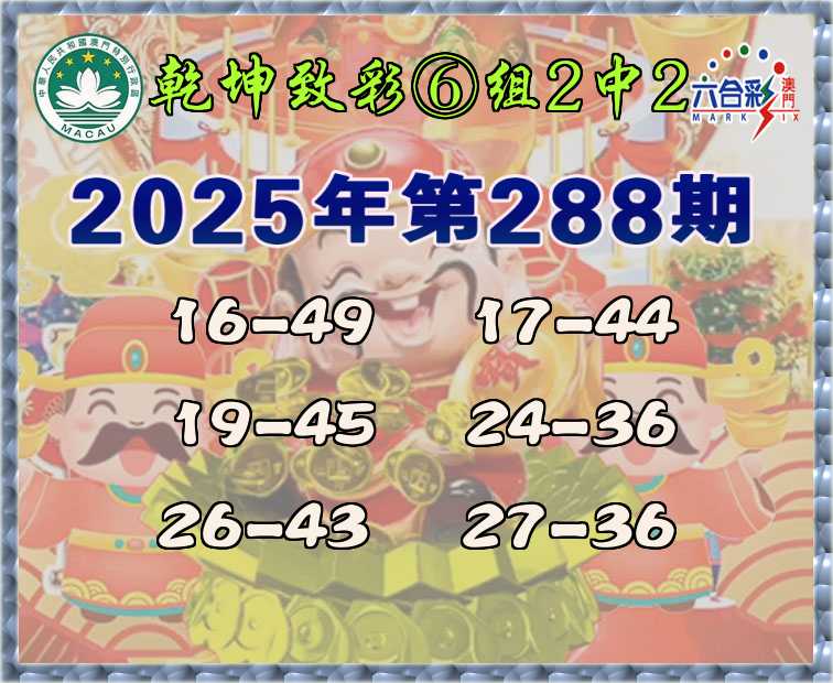 288期: 🎆《乾坤致彩》 🎆⑥组2中2🎆