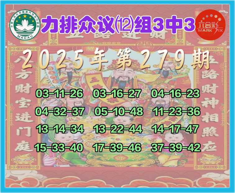 279期:【力排众议】 🥧 ⑿组3中3 🥧