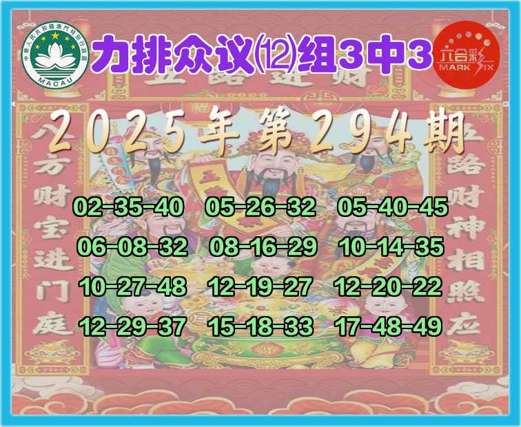 294期:【力排众议】 🥧 ⑿组3中3 🥧