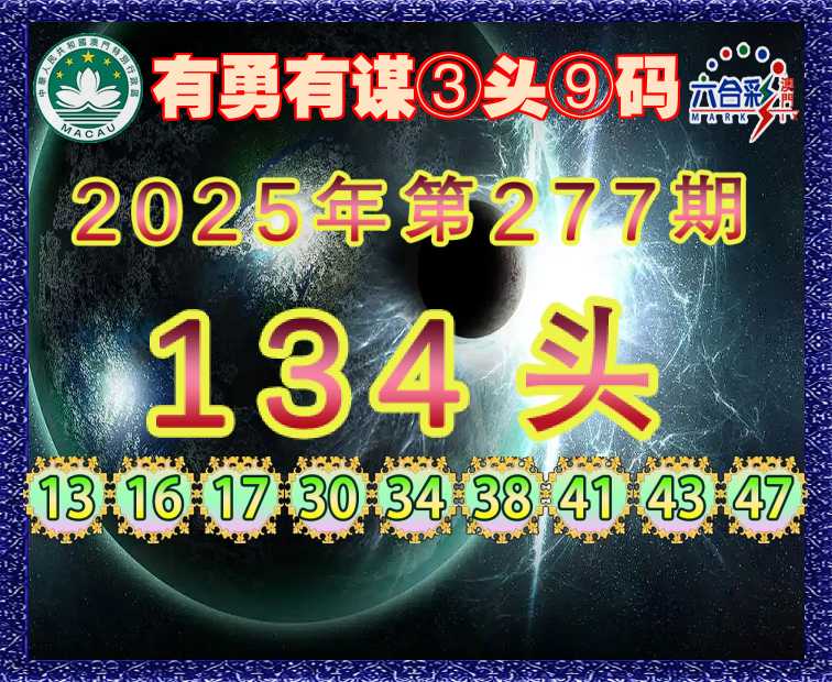 277期:《有勇有谋》 😳③头⑨码😳【134头】开:虎16准