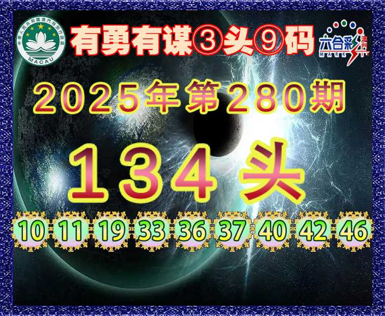 280期:《有勇有谋》 😳③头⑨码😳【134头】开:鼠42准