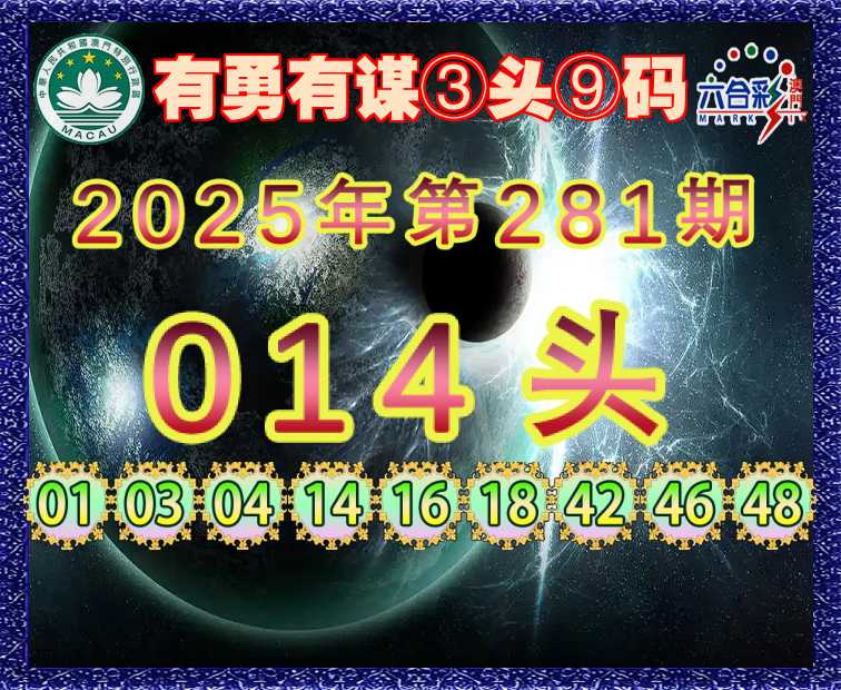 281期:《有勇有谋》 😳③头⑨码😳【014头】开:羊47准