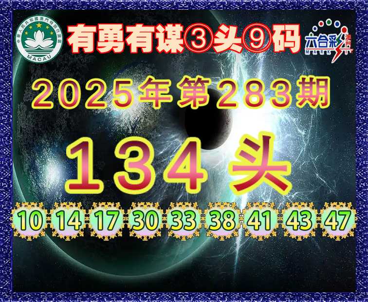 283期:《有勇有谋》 😳③头⑨码😳【134头】开:鸡45准