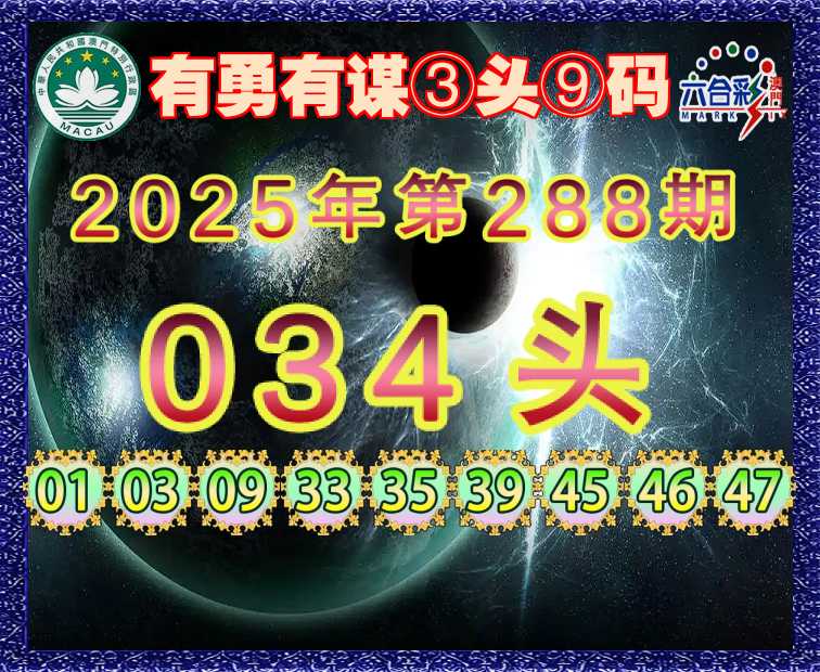 291期:《有勇有谋》 😳③头⑨码😳【034头】开:狗44准