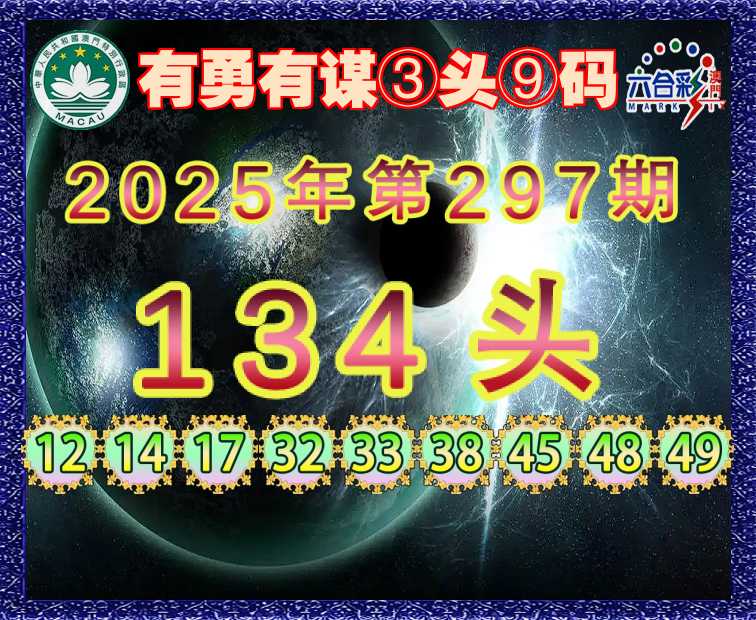 297期:《有勇有谋》 😳③头⑨码😳【134头】开:狗44准