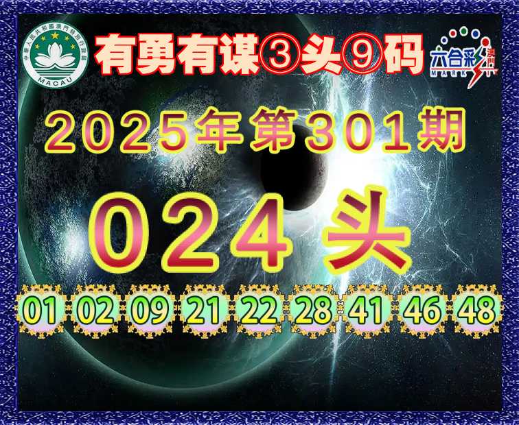 301期:《有勇有谋》 😳③头⑨码😳【024头】开:牛05准